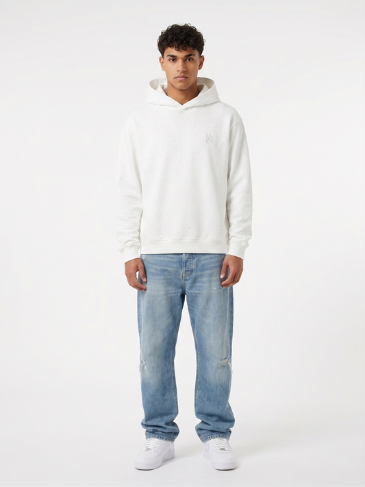 Amiri "Core Logo" Shotgun Distress White Hoodie