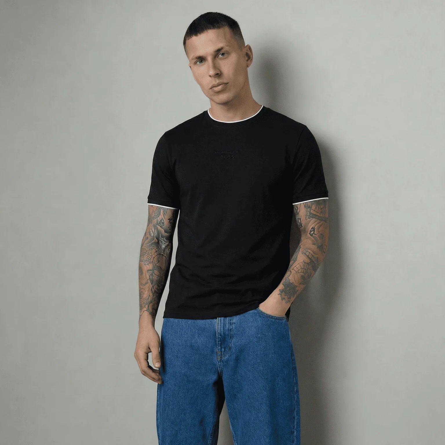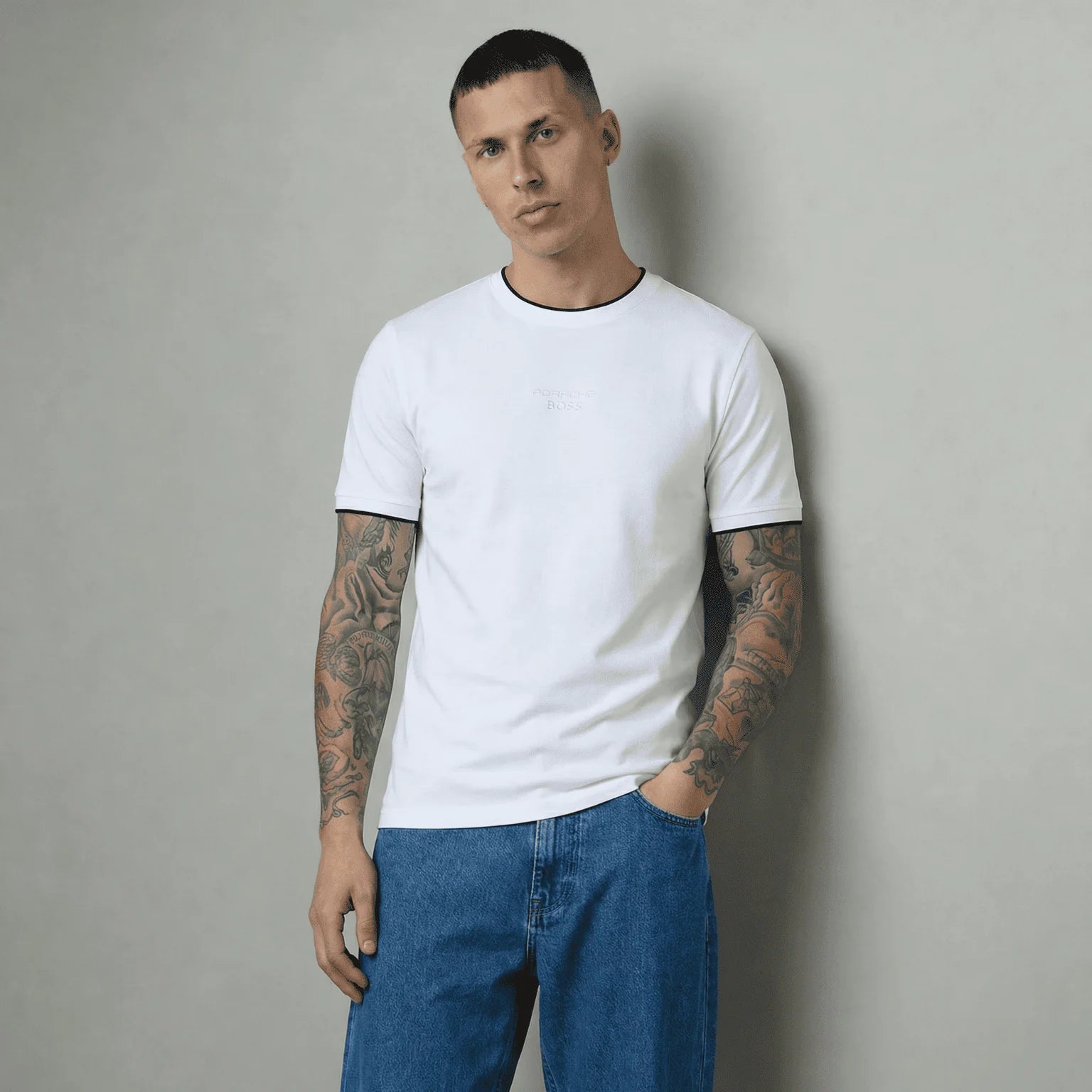 El protagonista es el impactante gráfico frontal "Boss Racing", ejecutado con una tipografía técnica y audaz que evoca la estética de los equipos de carrera. Confeccionada con un algodón premium de tacto técnico, ofrece una transpirabilidad y comodidad superiores, diseñadas para mantenerte fresco tanto en la pista como en la ciudad. El corte atlético y los detalles de diseño la convierten en una prenda imprescindible para los amantes de la velocidad con estilo.